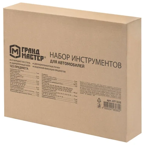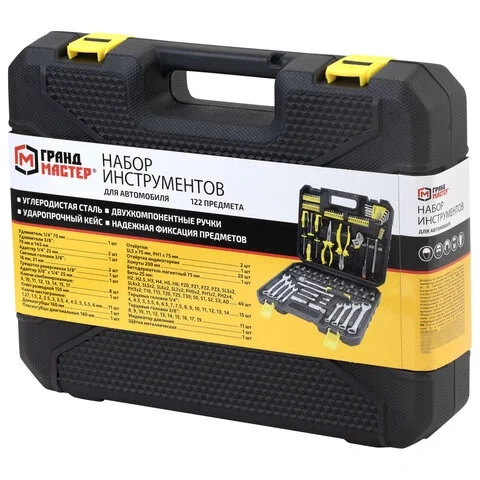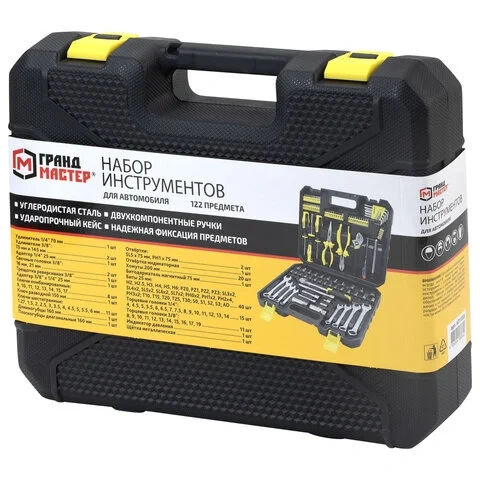 Набор инструментов для автомобиля, 122 предмета, пластиковый кейс, ГРАНДМАСТЕР, 671335
