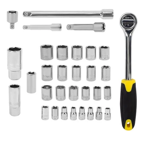 Реверсивная трещотка, удлинители и адаптеры обеспечивают доступ к креплениям и узлам даже в труднодоступных местах.