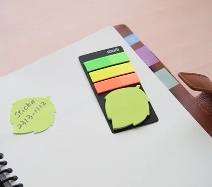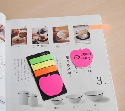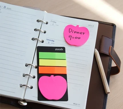 Набор из самоклеящегося блока из бумаги и закладок из пластика неоновых цветов.