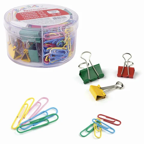 Набор BRAUBERG, скрепки цветные 28 мм/100 шт., кнопки канцелярские 100 шт., силовые кнопки 50 шт., 2