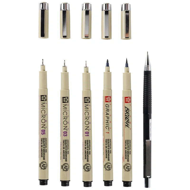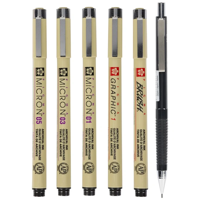 Набор капиллярных ручек Sakura 'Pigma Micron Manga' 6шт, 0,1мм/0,3мм/0,5мм/Pigma Graphic/мех.каранда
