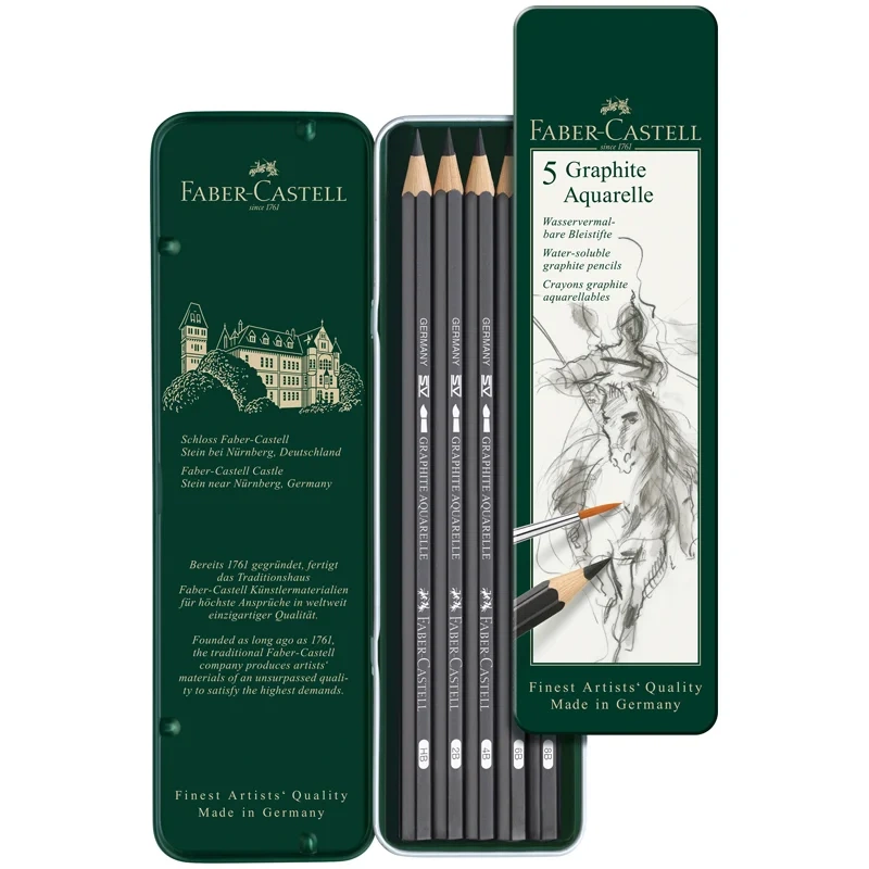 Набор карандашей ч/г акварельных Faber-Castell 'Graphite Aquarelle', 5шт., HB-8B, заточ., метал.кор