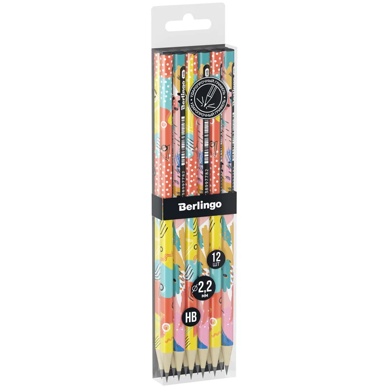 Набор карандашей ч/г Berlingo 'Memphis' 12шт., HB, круглый, заточен., ассорти, PET-бокс