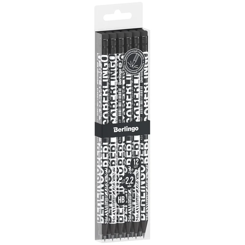 Набор карандашей ч/г Berlingo 'Monochrome' 12шт., HB, черное дерево, круглый, заточен., с ластиком,