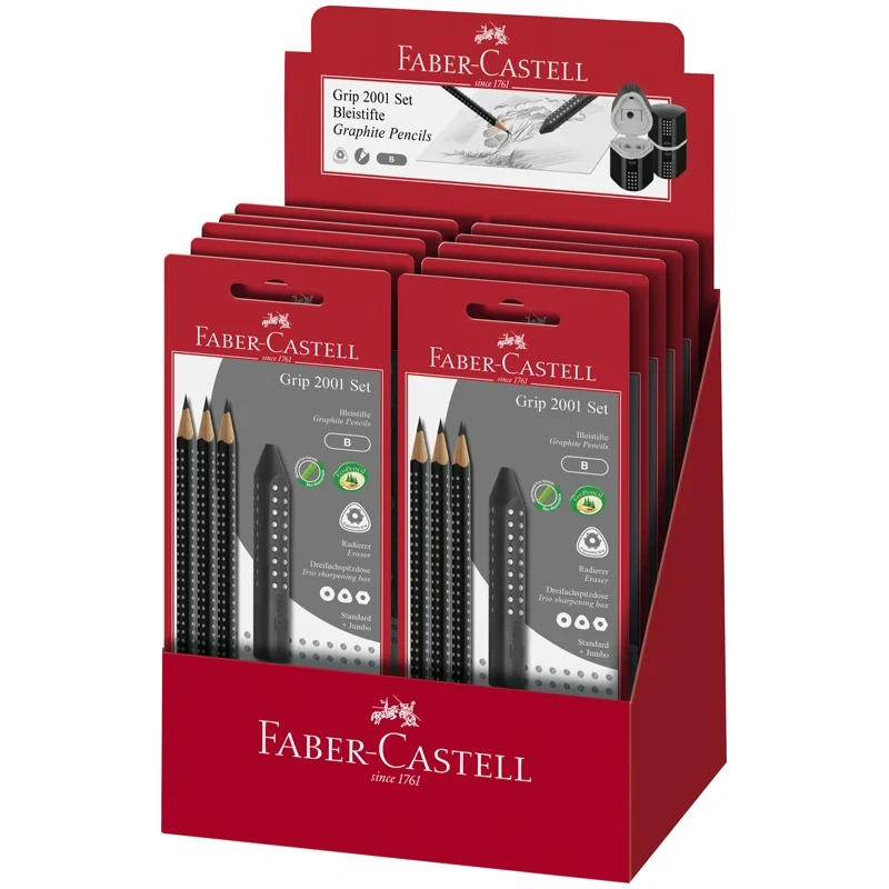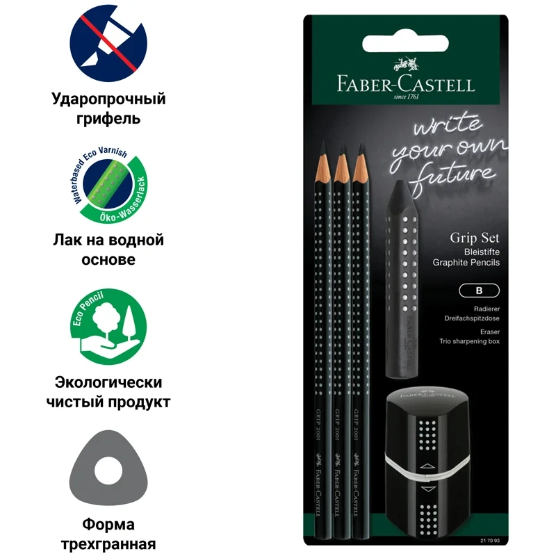 Набор карандашей ч/г Faber-Castell 'Grip 2001', 3шт., трехран., заточен., ластик, точилка, черный б