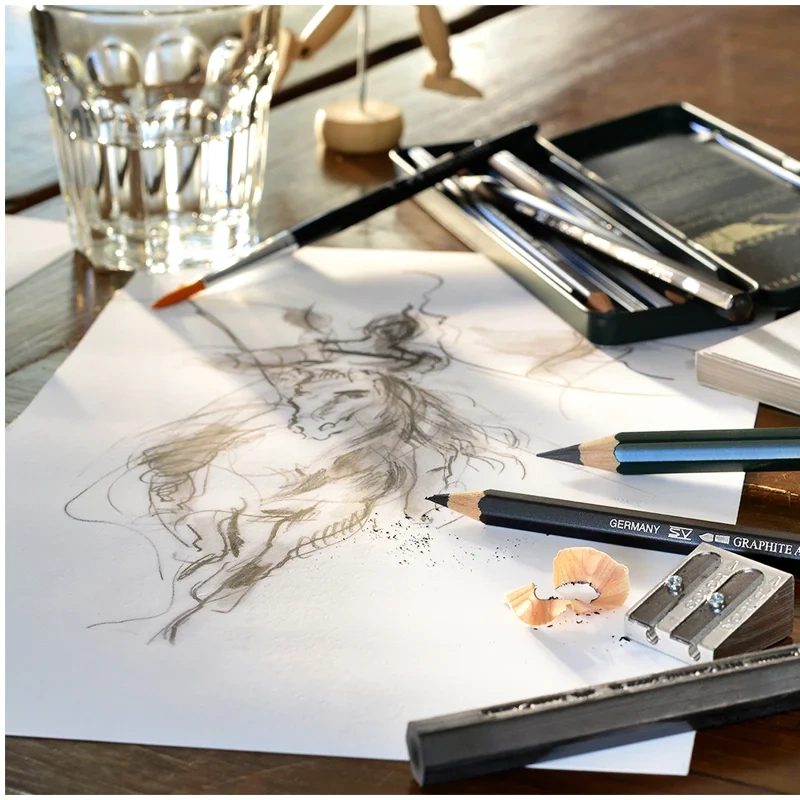 Линия Pitt Graphic от Faber-Castell предоставляет всем творческим художникам широкий выбор карандашей и мелков разной степени твердости для создания эскизов, графического дизайна и штриховки. «Зеленый карандаш от Фабера», о котором уже говорили с одобрением Ван Гог и Гете, теперь стал частью повседневной жизни. 16 различных степеней твердости варьируются от нежного серого оттенка до глубокого черного графита и предлагают художникам широкий спектр возможностей. Карандаши Pitt Graphite Pure идеально подходят для создания контрастов и затенения обширных участков. Эти карандаши предлагают беспрецедентные возможности для спонтанного выражения, создавая различные эффекты в зависимости от приложенного давления и степени твердости. Графитовые мелки Pitt - идеальное и очень экономичное средство для работы с очень большими эскизами и площадями.