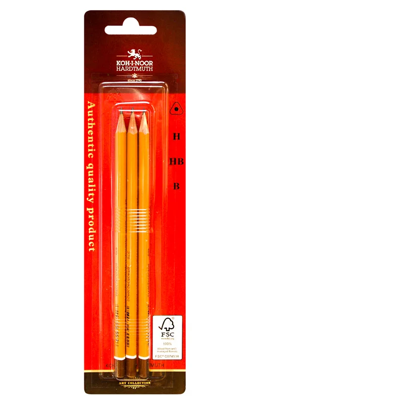 Набор карандашей ч/г Koh-I-Noor '1580' 3шт., H, HB, B, трехгранный, заточен., блистер, европодвес