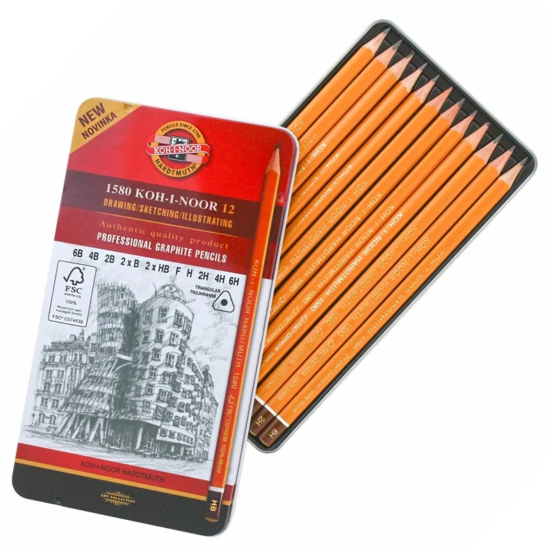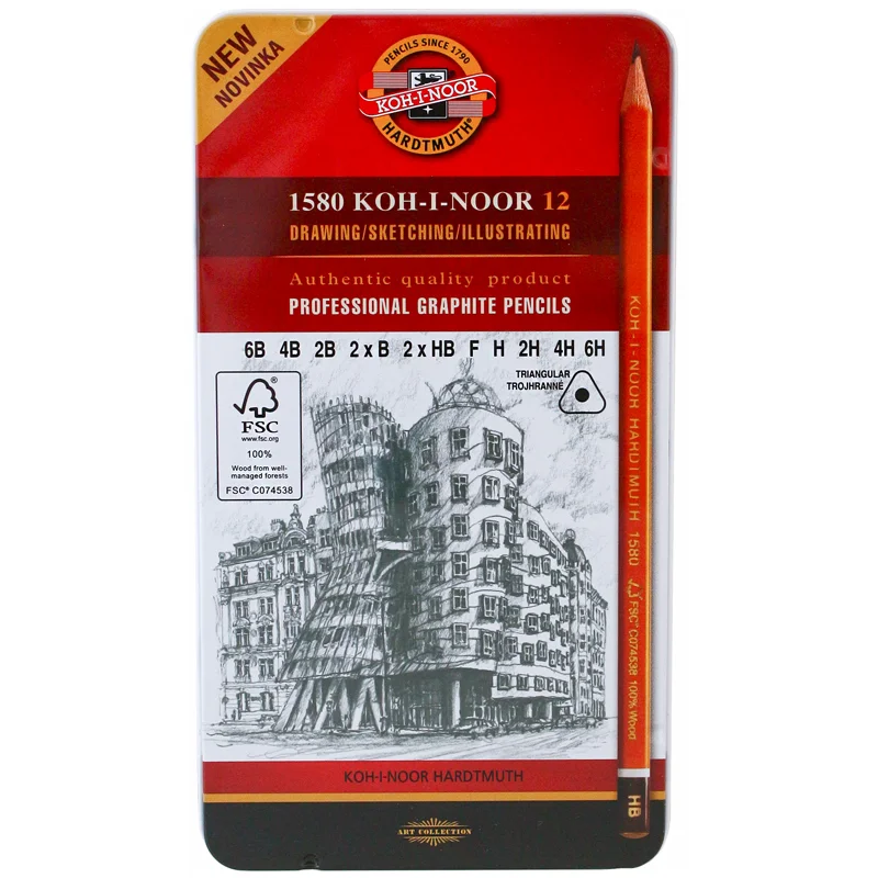 Карандаш чернографитный Koh-i-Noor 1580 – это легендарный карандаш 1500, но в треугольном корпусе. Им можно рисовать, чертить и писать как детям, так и профессионалам. Корпус выполнен из калифорнийского кедра и имеет неповторимый запах. Карандаш легко затачивается как точилками, так и ножом. Набор состоит из карандашей с оптимально подобранными твердостями, благодаря чему он очень универсален.