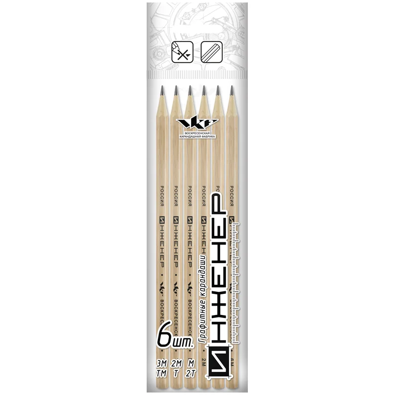 Набор карандашей ч/г Воскресенская карандашная фабрика 'Инженер', 6шт., Т-6М, заточ.,пакет,европодв.