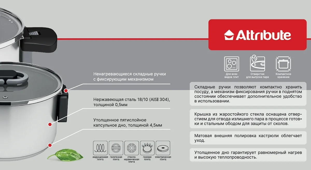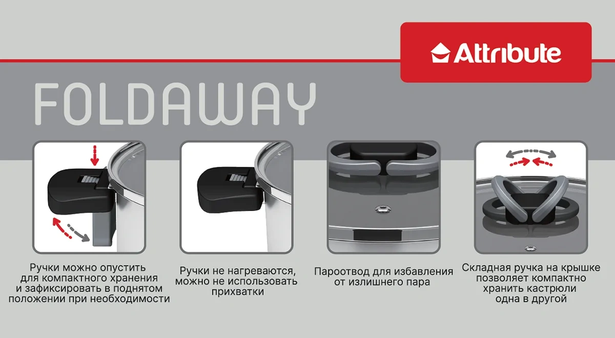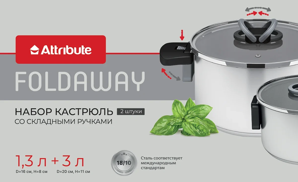 Набор кастрюль Attribute Foldaway с крышкой 1.3л и 3л, 2шт