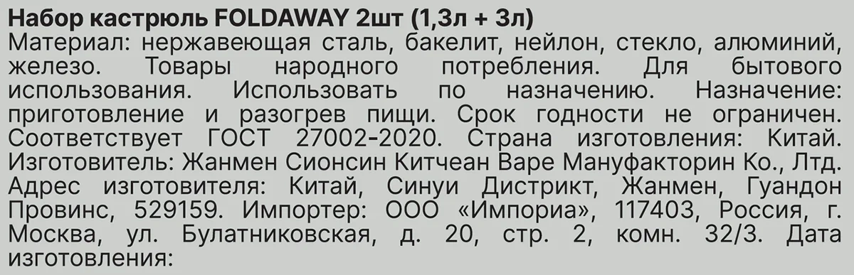 | Комплектация | кастрюля - 2 шт.; крышка - 2 шт. |