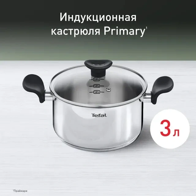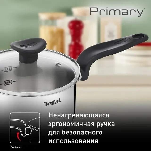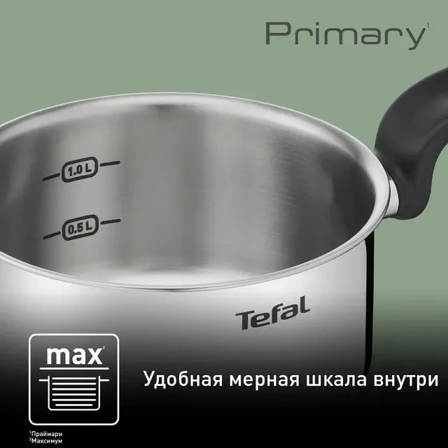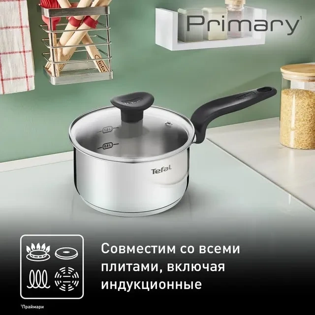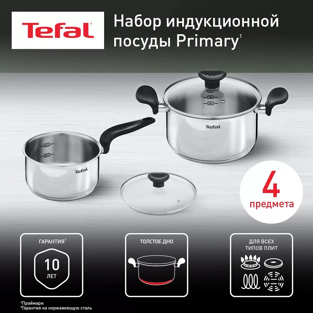 Набор посуды Tefal Primary кастрюля и ковш с крышками нержавеющая сталь индукция, 4 предмета