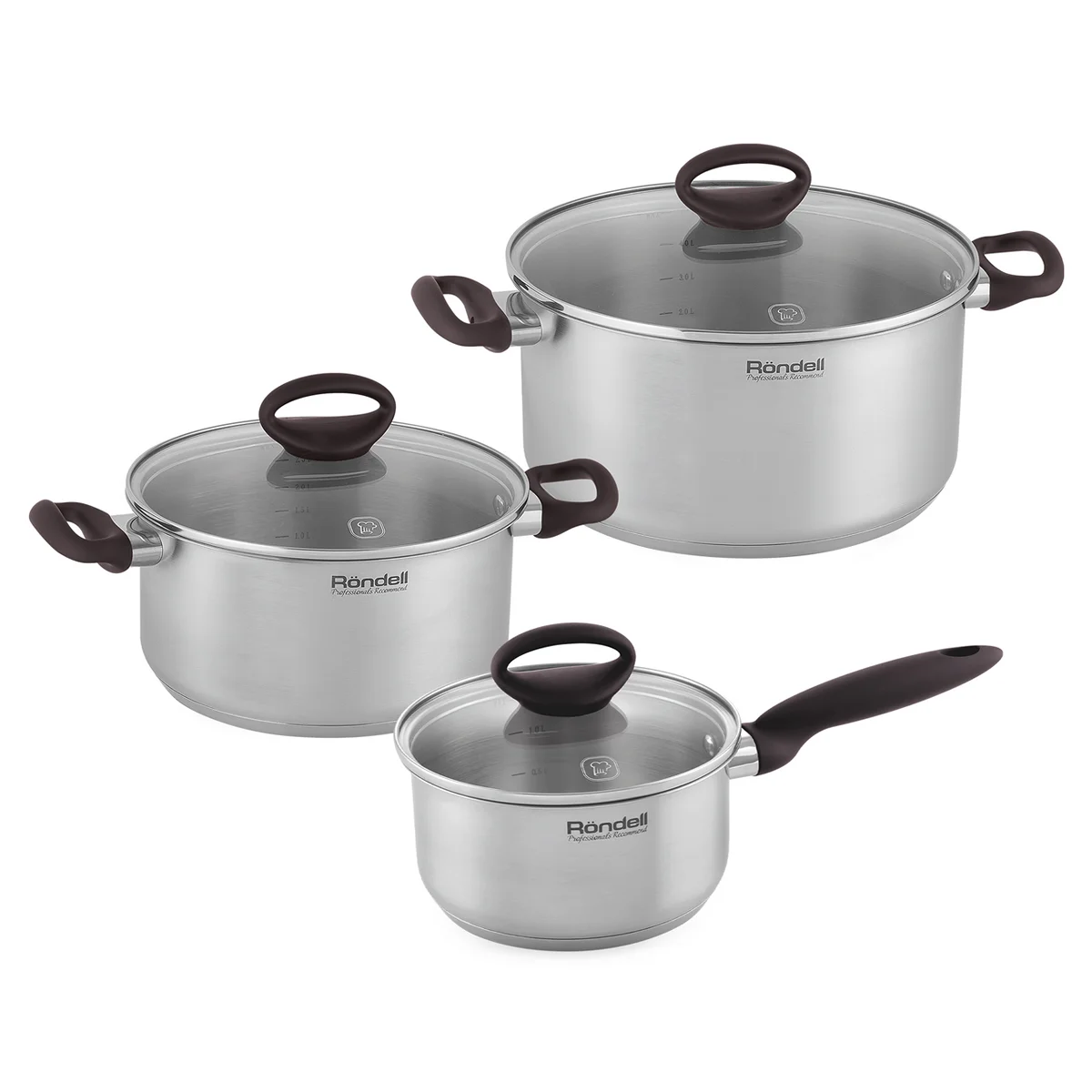 | Комплектация | кастрюля с крышкой 22 см - 1 шт.; кастрюля с крышкой 24 см - 1 шт.; ковш с крышкой 16 см - 1 шт. |