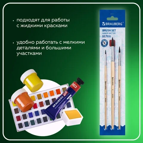 Набор кистей для рисования Brauberg Художник белка, 3шт