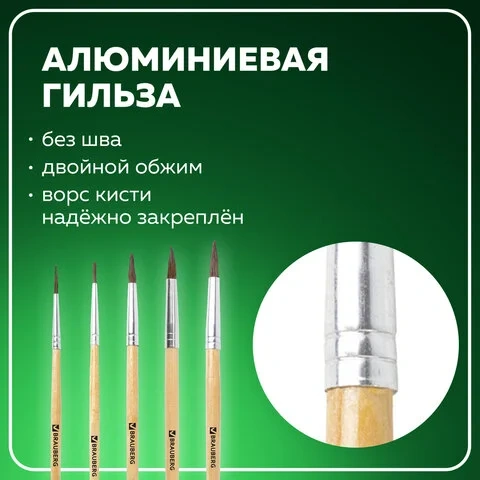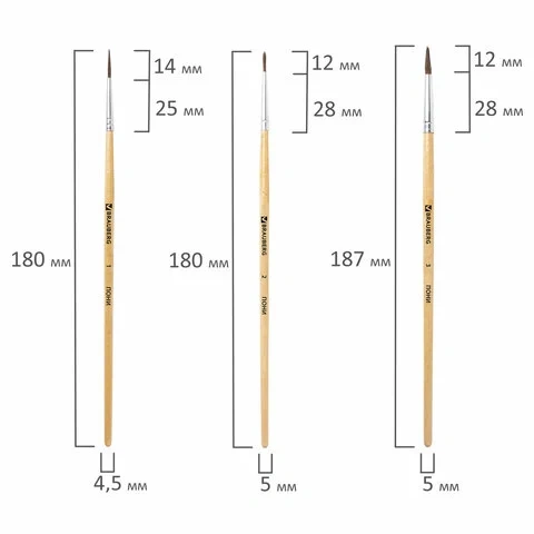 Кисти из волоса пони отлично впитывают и отдают краску, хорошо держат форму, долговечны и надежны. Благодаря кистям №1, 2 и 3 ребенку будет комфортно прорисовывать мелкие детали. Кисти № 4 и 5 позволят делать более крупные мазки и линии. Деревянную лакированную рукоятку кисти удобно держать в руке.