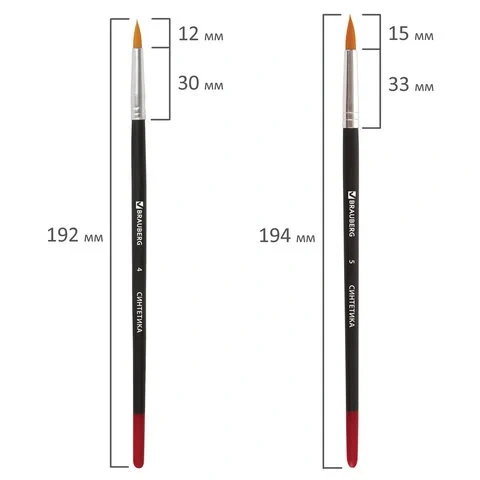 Кисти из синтетических волокон отлично впитывают и отдают краску, хорошо держат форму, долговечны и надежны. Кисти №1, 2, 3 подходят для проработки мелких деталей. Кисти №4 и 5 позволят прорисовывать более крупные детали и наносить широкие мазки и линии. Деревянную крашеную рукоятку кисти удобно держать в руке.