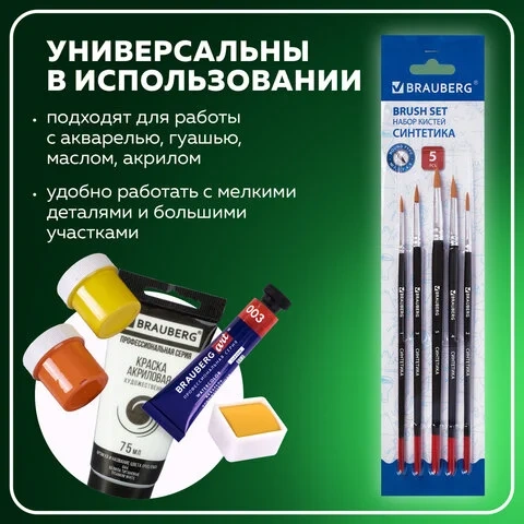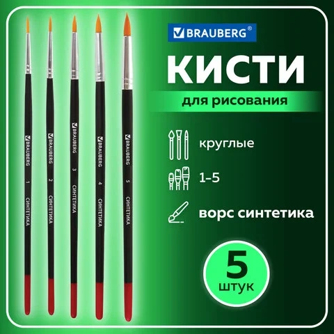Набор кистей для рисования Brauberg Талант синтетика, 5шт
