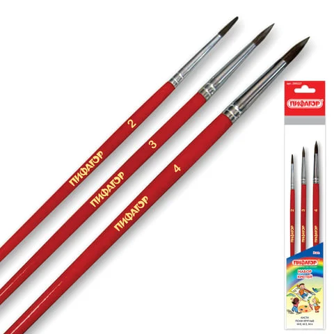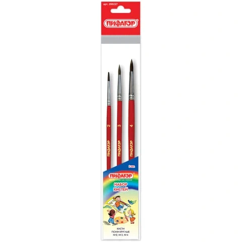 Набор кистей для рисования Пифагор Школьник пони, 3шт