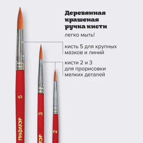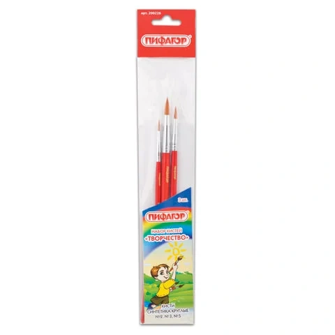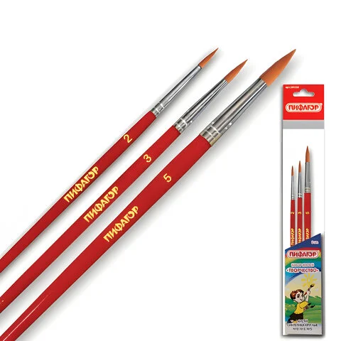 Набор кистей для рисования Пифагор Творчество синтетика, 3шт