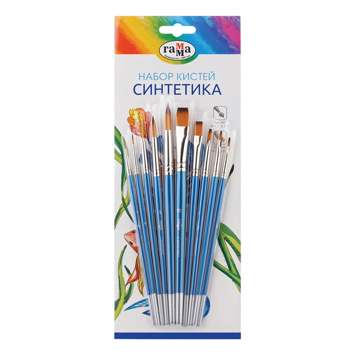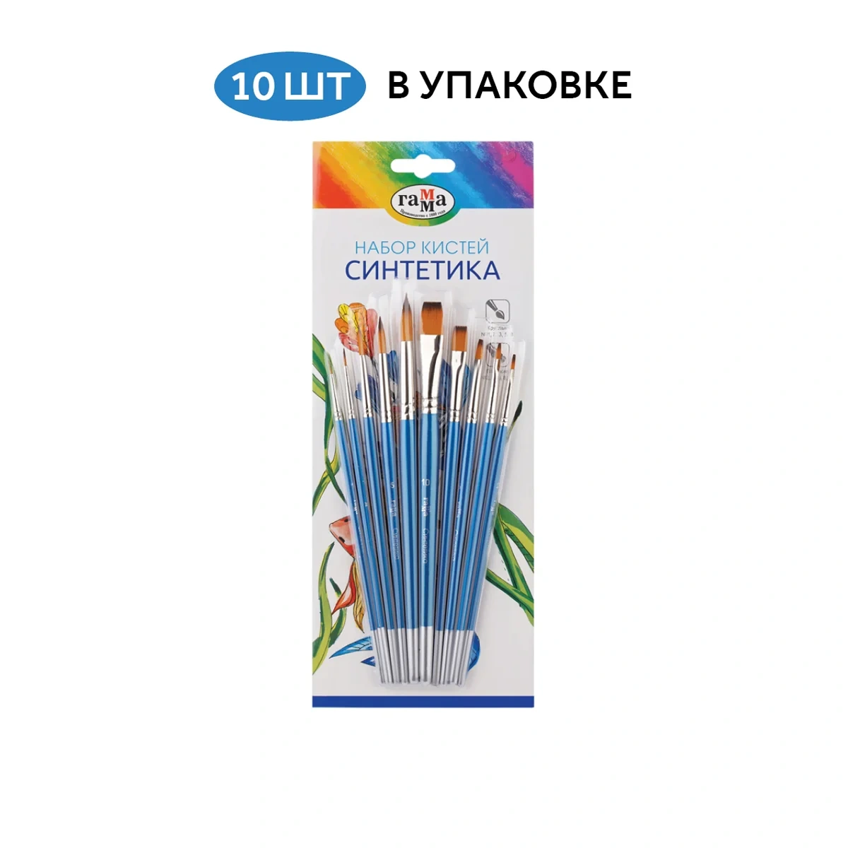 Набор кистей Гамма 'Классические' 10шт., синтетика, круглые № 1, 2, 3, 5, 8, плоские № 2, 4, 6, 8, 1