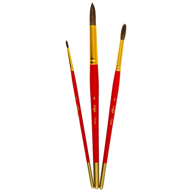 Набор кистей Гамма 'Классические' 3шт., пони, круглые № 2, 5, 8, блистер, европодвес