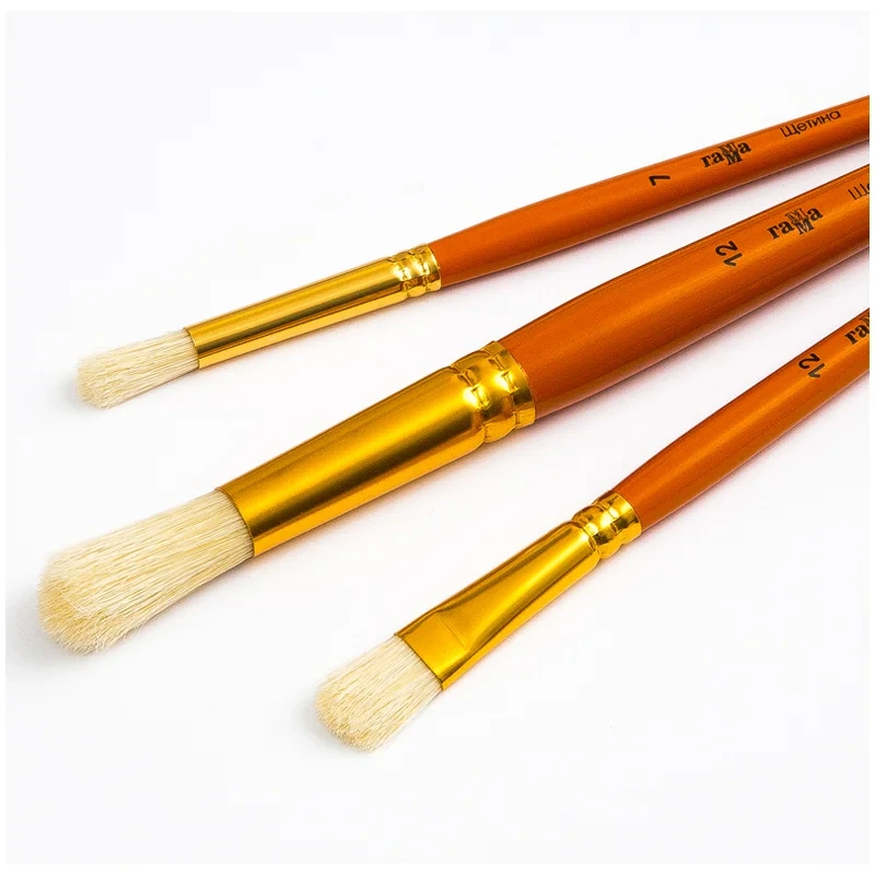 В наборе кистей ГАММА щетина серии «Классическая» собраны самые востребованные номера кистей круглой и плоской формы. Он прекрасно подойдет для всех видов красок, в том числе для создания специальных художественных эффектов. Кисти упакованы в красивый яркий блистер и станут незаменимыми помощниками для школьников и педагогов, а также хорошим подарком всем, кто увлекается живописью.