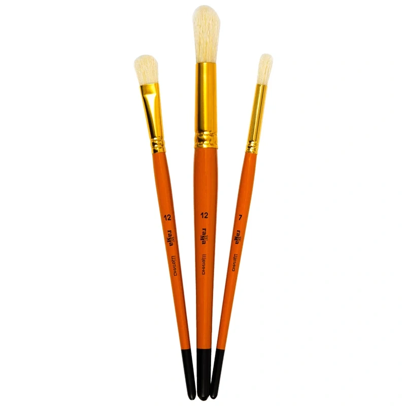 Набор кистей Гамма 'Классические' 3шт., щетина, круглые № 7, 12, плоская № 12, блистер, европодвес