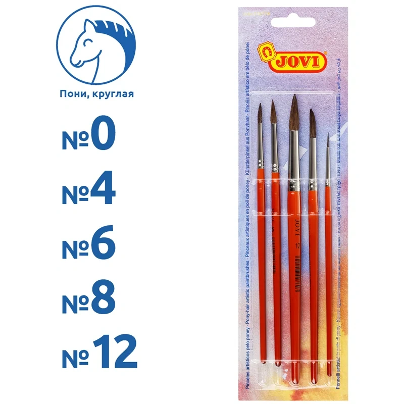 Набор кистей JOVI 5шт., № 0, 4, 6, 8, 12, пони, блистер