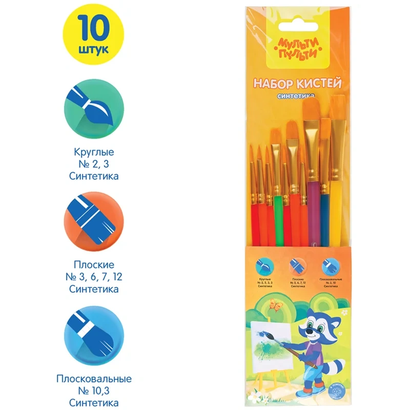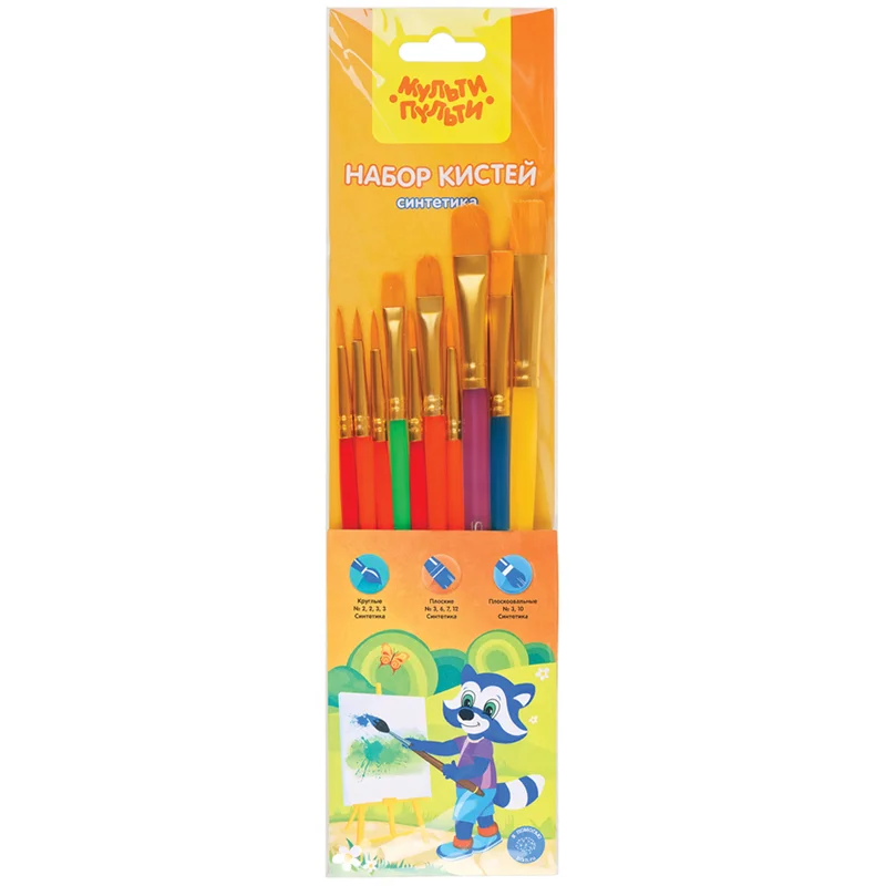 Набор кистей Мульти-Пульти 10шт., синтетика, № 2, 3 круглые; № 3, 6, 7, 12 плоские; № 10, 3 плоскоов