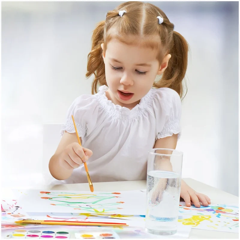 Используемый синтетический волос обладает капиллярным эффектом, поэтому кисти можно использовать в том числе для акварельных красок.