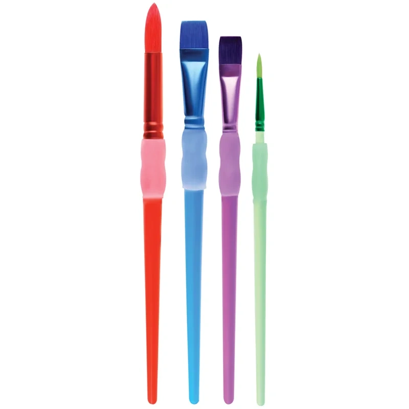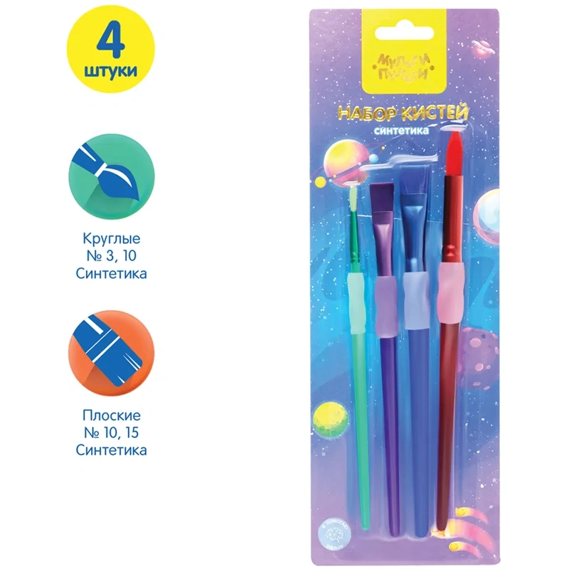 Набор кистей Мульти-Пульти 4шт., синтетика, № 10, 15 плоские, № 3, 10 круглые, с силиконовым грипом,