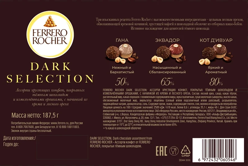Набор конфет Ferrero Rocher Dark Selection, 187г