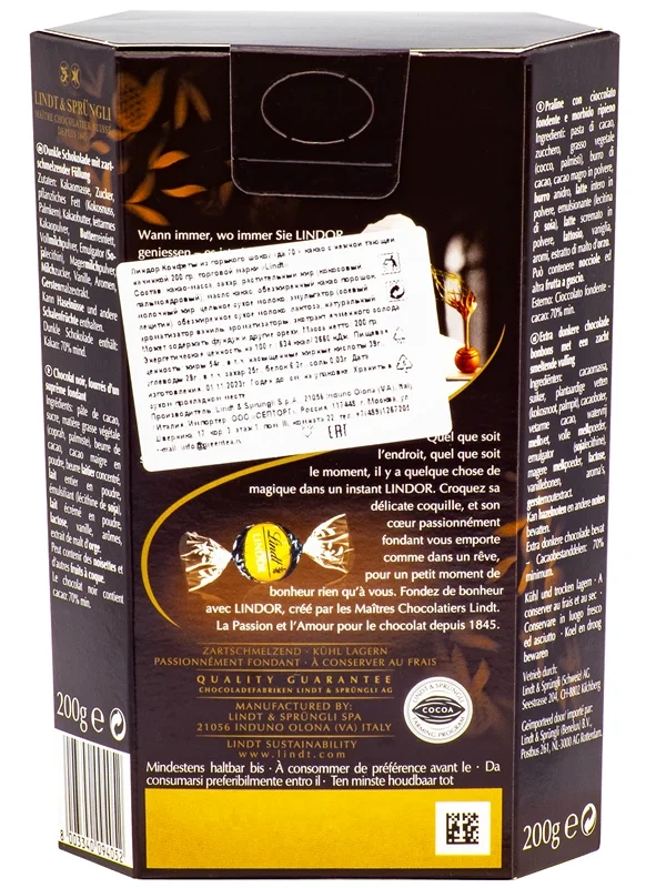 Набор конфет Lindt Lindor с горьким шоколадом 70%, 200г