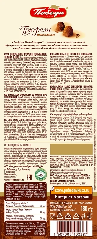 Набор конфет Победа вкуса Трюфели с темным какао, 180г