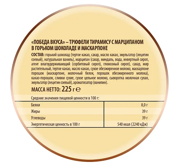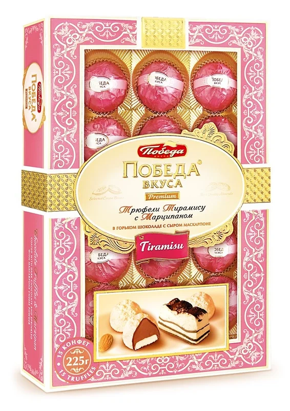 Набор конфет Победа вкуса Трюфели тирамису-марципан-темный шоколад-маскарпоне, 225г