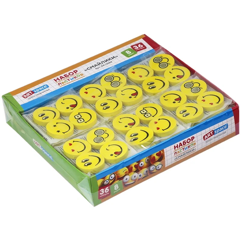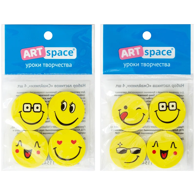 Набор ластиков ArtSpace 'Смайлики', 4шт., круглые, термопласт. резина, 25*5мм