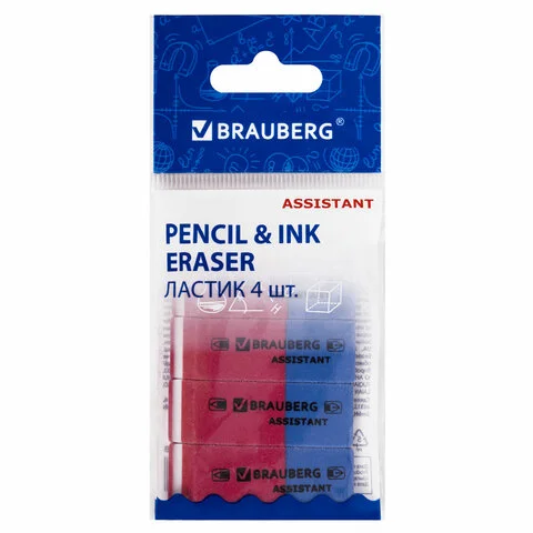 Набор ластиков Brauberg Assistant 80 41х14х8мм, красно-синий, 4шт