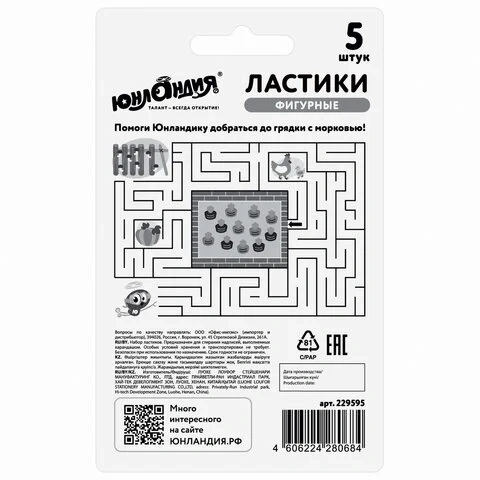 Набор ластиков фигурных ЮНЛАНДИЯ 'Огород', 5 шт., ассорти, 229595