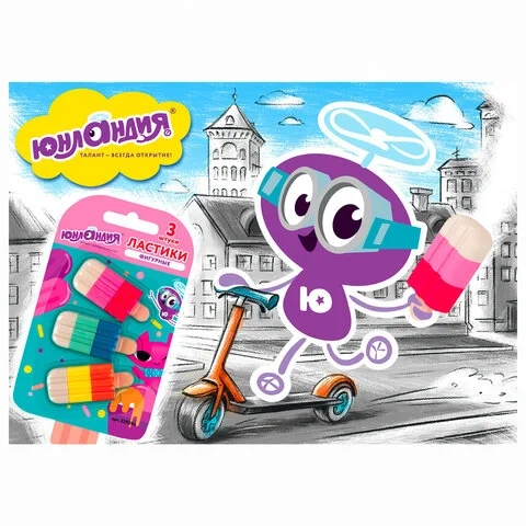 Набор ластиков фигурных ЮНЛАНДИЯ 'СЛАДКИЕ ИСТОРИИ', 3 шт., ассорти, 229594