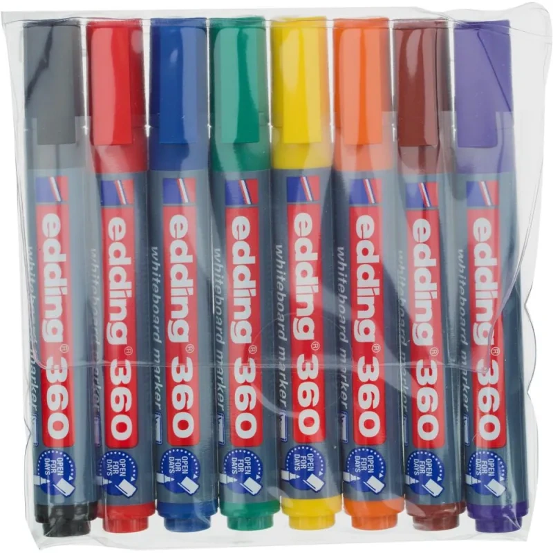 Набор маркеров для белых досок EDDING 360, 1,5-3мм, 8 цветов в ПВХ конверте