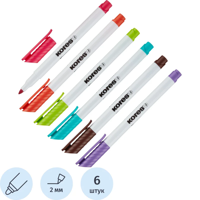 Набор маркеров для белых досок KORES 6 цв, 2 мм 22846