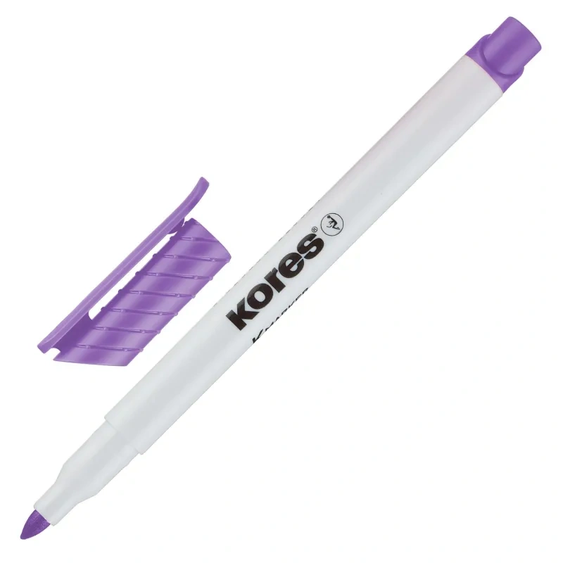 Набор маркеров для досок Kores 22846 Круглый наконечник. Пластиковый корпус. Толщина линии письма — 2 мм. Цвета: красный, розовый, фиолетовый, бирюзовый, коричневый, салатовый. Стираются с таких гладких поверхностей, как пластик, стекло и эмаль, сухим способом. Снятый колпачок не потеряется благодаря тому, что во время работы его можно надевать на верхнюю часть маркера. Размеры маркера: диаметр 11 мм, длина 152 мм.