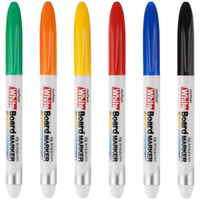 Высококачественные маркеры Whiteboard от бренда Munhwa для белых магнитно-маркерных досок. Толщина линии: 2 мм. Маркеры обладают яркими и насыщенными цветами и сохраняют яркость надолго. Легко стираются с поверхности сухой губкой, не оставляют следов и разводов. Чернила на спиртовой основе высыхают на поверхности доски в течении 1-2 секунд. Прочный фибровый наконечник пулевидной формы не западает в корпус и сохраняет форму на протяжении всего срока службы маркера. Пишут мягко без скрипа и не оставляют царапин. Маркеры отлично подойдут для проведения ярких презентаций в офисе и для детского творчества.
