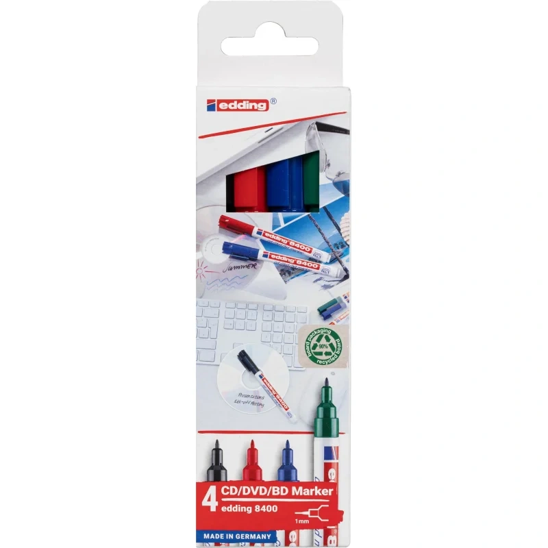 Набор маркеров для CD EDDING E-8400/4S 0,5-1 мм, 4 цвета