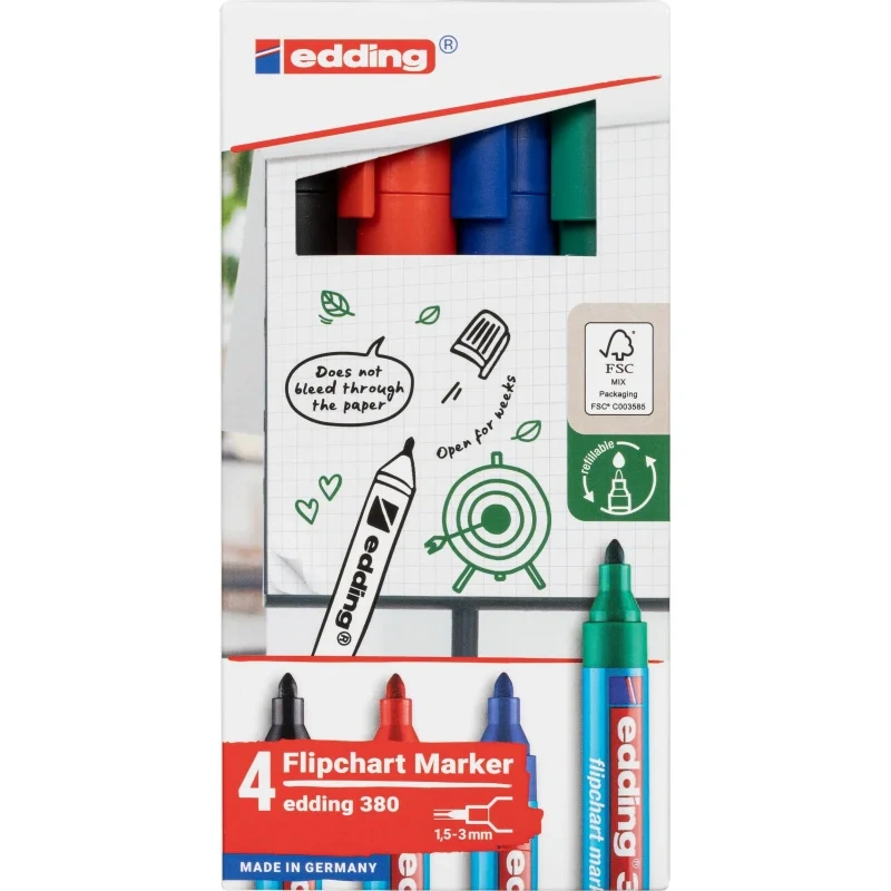 Набор маркеров для флипчартов EDDING E-380/4S 1,5-3мм, кругл 4цвета