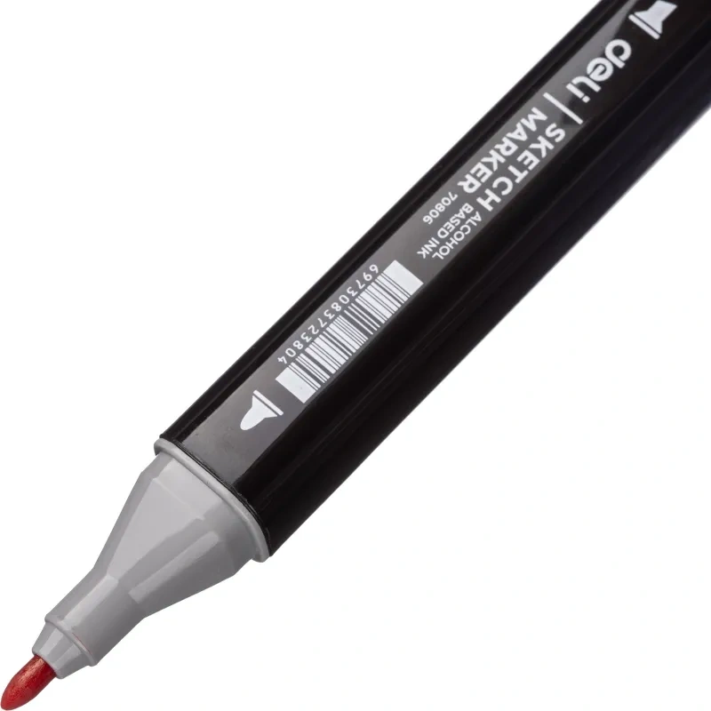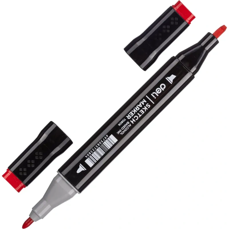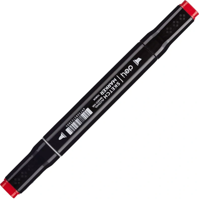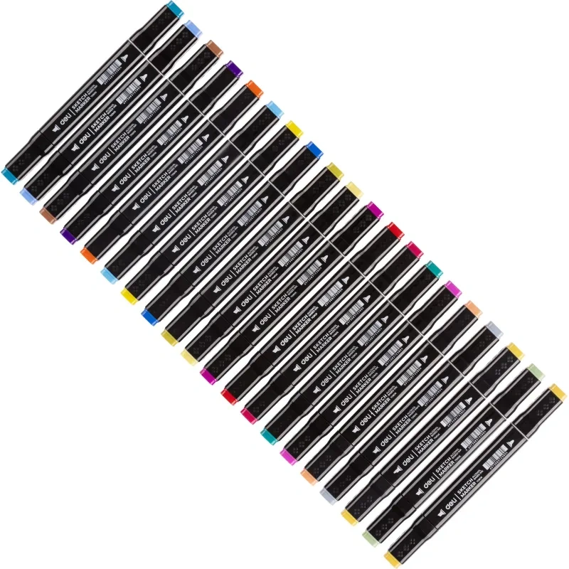 Высококачественный набор из 40 скетч-маркеров от производителя Deli. Чернила скетч-маркеров Deli на спиртовой основе, быстросохнущие. Насыщенные цвета отлично смешиваются, создавая нужные вам оттенки и невероятные градиенты. Маркеры двухсторонние: с одной стороны пулевидный наконечник (1 мм), который используется для прорисовки деталей, с другой — клиновидный, скошенный (6 мм), который позволяет прокрашивать большие площади рисунка. Плотно прилегающие колпачки надёжно защищают маркеры от высыхания. Каждый колпачок имеет определённый цвет, соответствующий цвету маркера, кроме этого, на колпачках написан цветовой код и название этого цвета. Специально для удобной переноски маркеров предусмотрена текстильная сумочка с ручкой и застёжкой на молнию. Независимо от того, занимаетесь ли вы созданием картин, разработкой дизайна одежды или интерьеров, архитектурой или мультипликацией, маркеры Deli помогут вам в создании ваших шедевров.