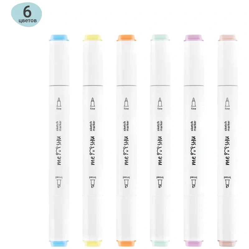 Набор маркеров для скетчинга MESHU 06цв., пастельные цвета