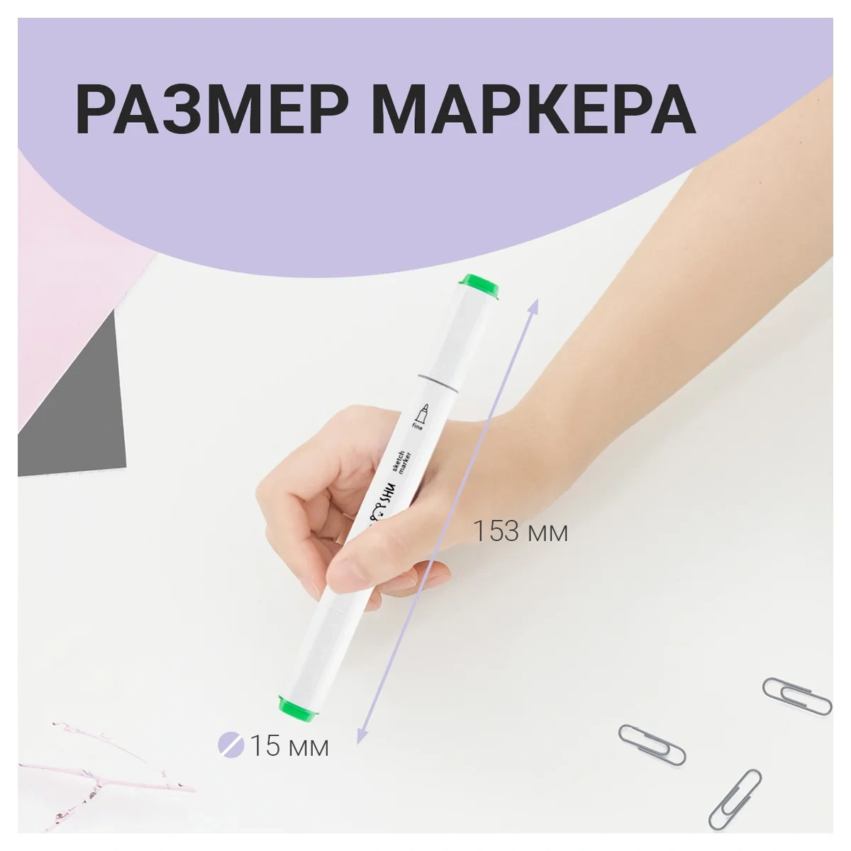 Набор двусторонних маркеров для скетчинга Meshu - идеальный выбор для художников, дизайнеров, иллюстраторов и любителей скетчинга, подходят для создания анимэ и манги. Эргономичный трехгранный корпус удобно лежит в руке и позволяет эффективно прорабатывать мелкие детали рисунка. Чернила на спиртовой основе - быстро высыхают, водостойкие, нетоксичны и не портят поверхность бумаги. Маркеры обладают пулевидным (2мм) и скошенным (6 мм) наконечниками, что позволяет прорабатывать как мелкие детали рисунка. так и закрашивать большие области.