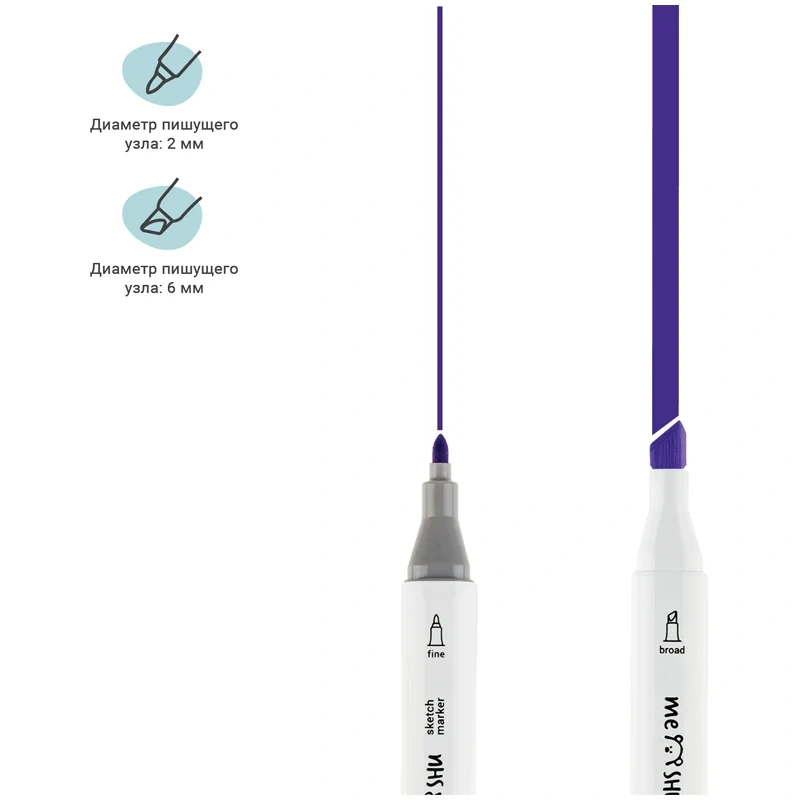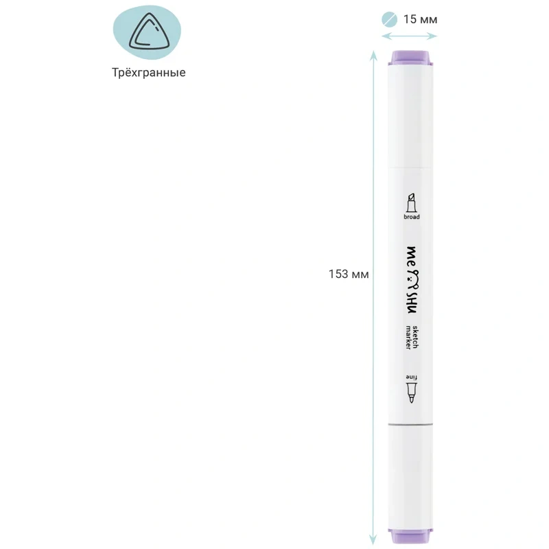Набор двусторонних маркеров для скетчинга Meshu - идеальный выбор для художников, дизайнеров, иллюстраторов и любителей скетчинга, подходят для создания анимэ и манги. Эргономичный трехгранный корпус удобно лежит в руке и позволяет эффективно прорабатывать мелкие детали рисунка. Чернила на спиртовой основе - быстро высыхают, водостойкие, нетоксичны и не портят поверхность бумаги. Маркеры обладают пулевидным (2мм) и скошенным (6 мм) наконечниками, что позволяет прорабатывать как мелкие детали рисунка. так и закрашивать большие области.