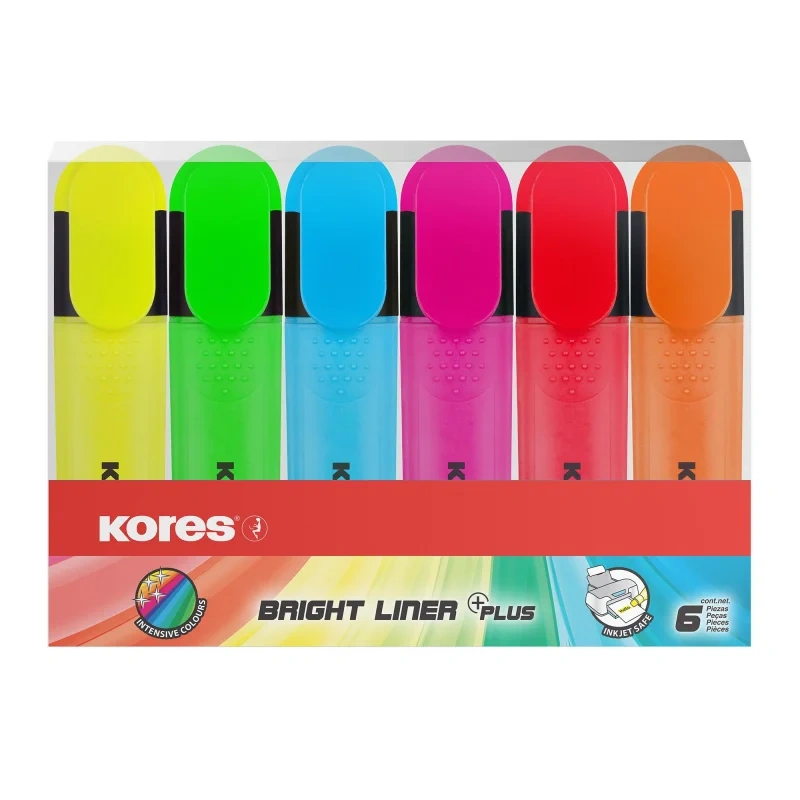 Набор маркеров текстовыделителей Набор текстовыделителей Kores BRIGHT LINER PLUS, скош након, 1-5 мм